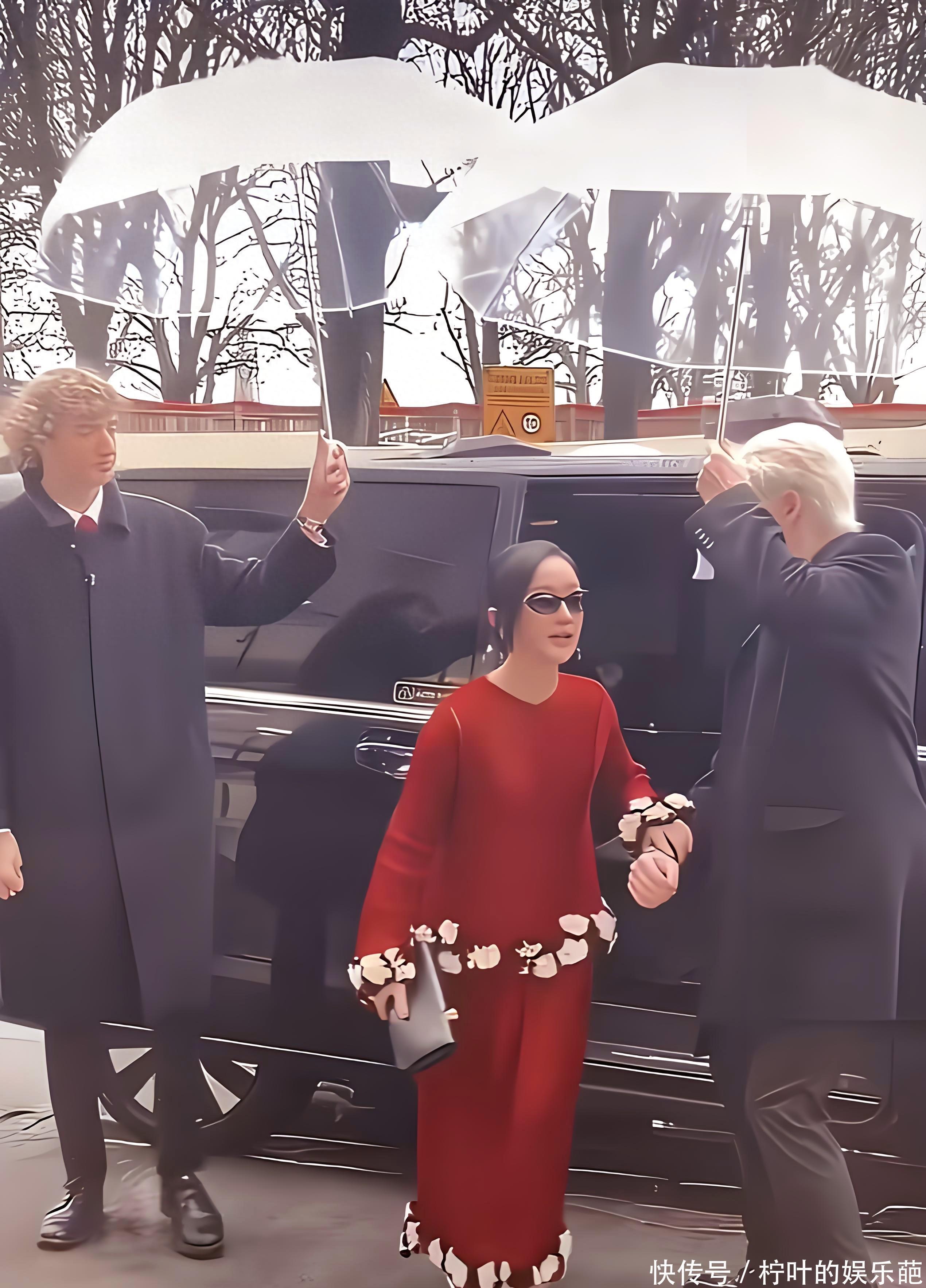 周迅从主办方接她的轿车里出来时,两名超过1.80米的白人壮汉,恭恭敬敬地为周迅撑伞。